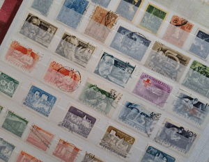Európai festészet"bélyegek és blokkok, A/4-es 4 törtfehér lapos / 8 oldalas Posthorn albumban