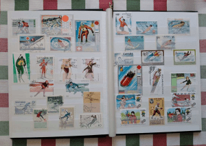 Sport témájú bélyegek 5 földrészről 6 törtfehér lapos/12 oldalas A/5-ös Posthorn bélyegalbumban