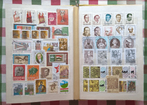 Zeneművészet" bélyegeken, 4 lapos/ 8 oldalas, A/5-ös Posthorn bélyegalbumban + egy ajándék üveg pezsgő