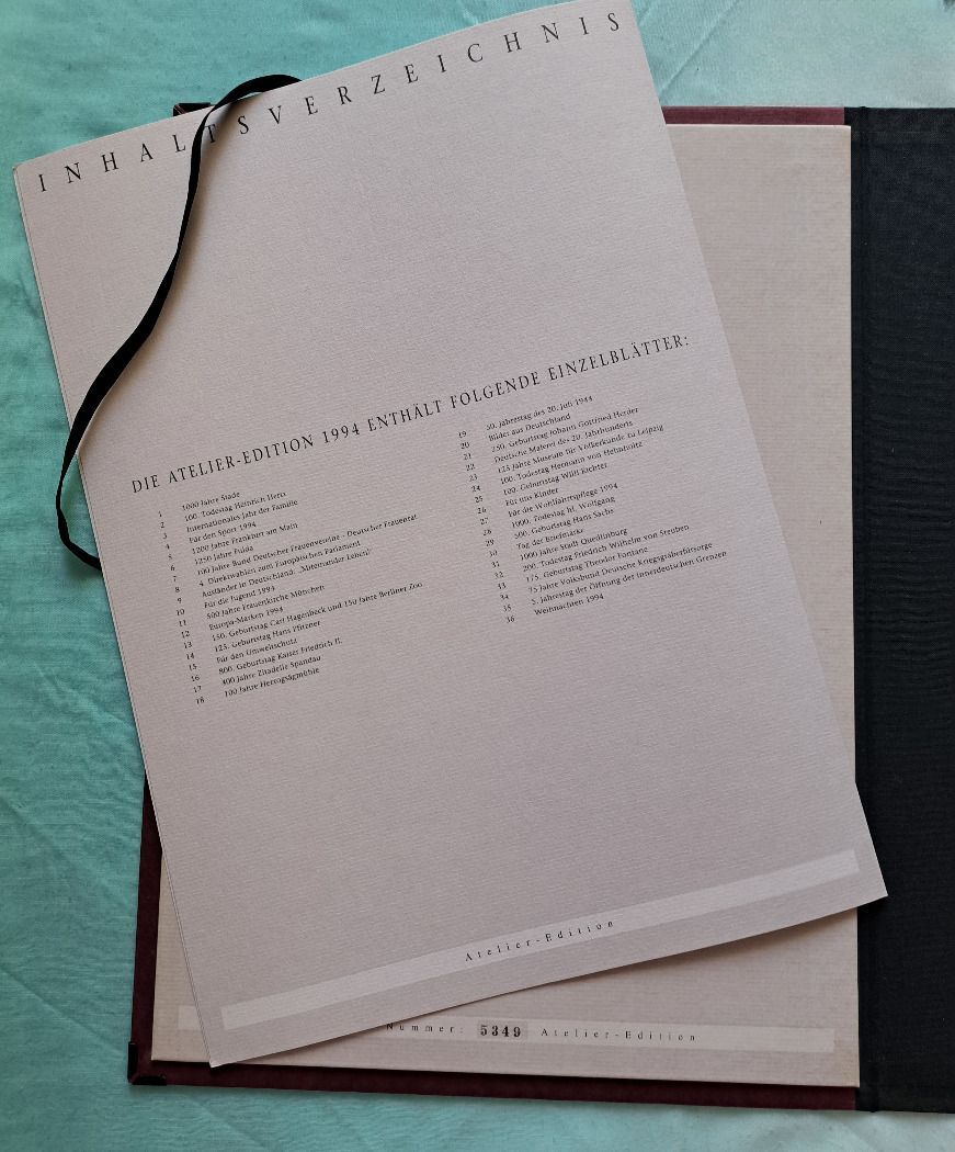Az Atelier Edition egy lehetőség arra, hogy felhívja a nyilvánosság figyelmét az adott ország , jelen esetben az Német Szövetségi Köztársaság bélyegeire, mint grafikai műalkotásokra. Betekintést nyújt a „bélyegző műhelyekbe „, feltárja a képzelő erőt, a bonyolult és számos részletgazdag munkát.