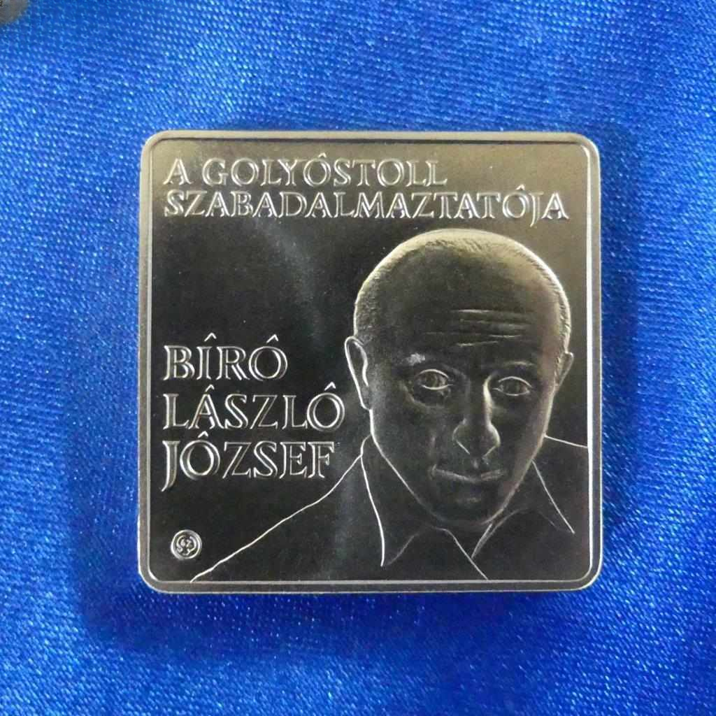 A Magyar mérnökök, feltalálók sorozat tagjaként a MNB újabb négyzet alakú emlékérmet adott ki az íróeszközök forradalmi megújításának emlékére. Bíró László József a golyóstoll feltalálója, szabadalmaztatója. 2010. szeptember 29-ei kibocsátás a feltaláló születése napjának állít emléket ez a kupronikkel érme. 2010. évi Bíró László golyóstoll színesfém emlékérme PPA technika és a műszaki találmányok rajongóinak!Négyzet alakú emlékérme!névérték:1 000 Ftminőség:PPkibocsátás:2010.09.29.anyag:színesfémfinomság:kibocsátott darabszám:10000 darabátmérő:28,43 mm x 28,43 mm mmsúly:14 gtervező:Szabó GyörgyLeírásBíró László József (1899-1985) magyar feltaláló, újságíró, festőművész. Világhíressé legismertebb találmánya, a golyóstoll tette. Az emlékére kibocsátott érme a népszerű, magyar mérnökök, feltalálók technikai újdonságait, találmányait bemutató emlékérme-sorozat tagja.Előlap: Az emlékérme előlapján a golyóstoll műszaki rajza alapján készült stilizált ábrázolás látható. A golyóstoll ábrázolásnál jobbra fent a „2010” verési évszám, balra lent három vízszintes sorban a „BP.” verdejel, az „1000” értékjelzés és a „FORINT”, valamint a „MAGYAR KÖZTÁRSASÁG” felirat olvasható.Hátlap:Az emlékérme hátlapján Bíró László József portréja látható. A portré fölötti két vízszintes sorban az „A GOLYÓSTOLL” és a „SZABADALMAZTATÓJA” felirat, a portrétól balra három vízszintes sorban a „BÍRÓ”, a „LÁSZLÓ” és a „JÓZSEF” felirat olvasható. Az emlékérme bal alsó sarkában található Szabó György tervezőművész mesterjegye.