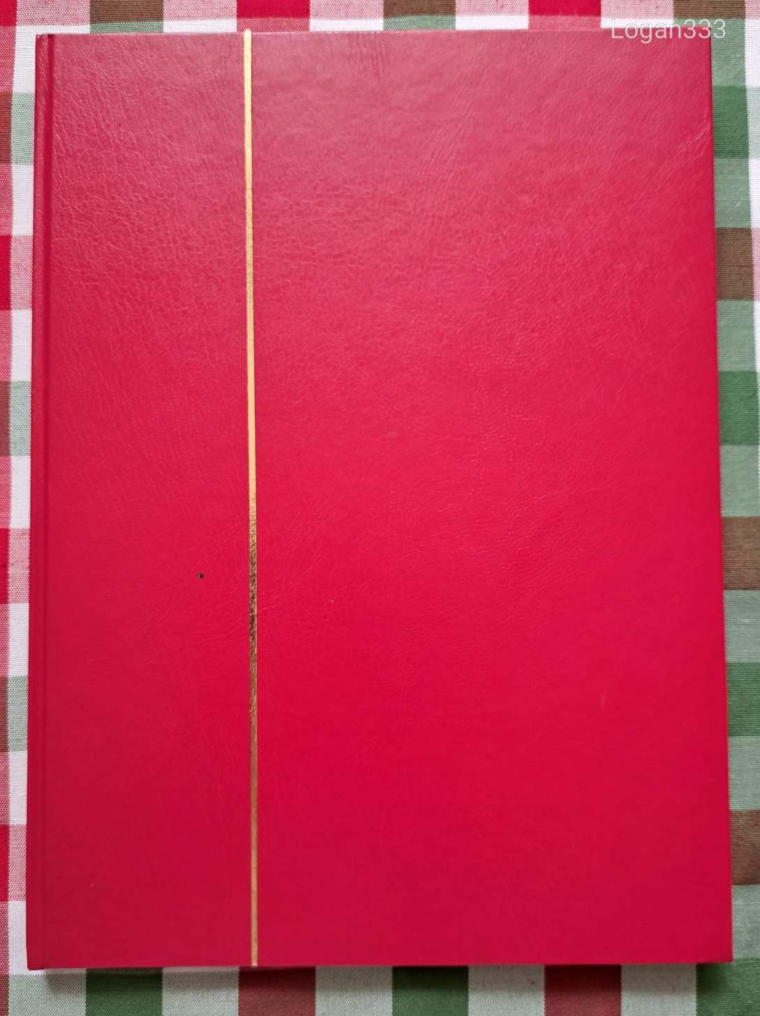 Bordó színű, kemény műbőr borítású, arany színű csíkkal díszített, A/4-es méretű, 4 törtfehér lapos (8 oldalas), fehér elő- és utó oldalas, jó állapotú Briefmarken gyűjtő – tároló bélyegalbum.