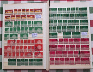 Régi magyar gyűjtemény, portókkal - 8 lapos/ 16 oldalas, kis Briefmarken bélyegalbumban + egy ajándék üveg pezsgő