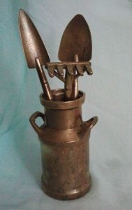 Réz kanna 3 db kerti szerszámmal dekoráció, Jelzett, ITALY + egy ajándék üveg pezsgő