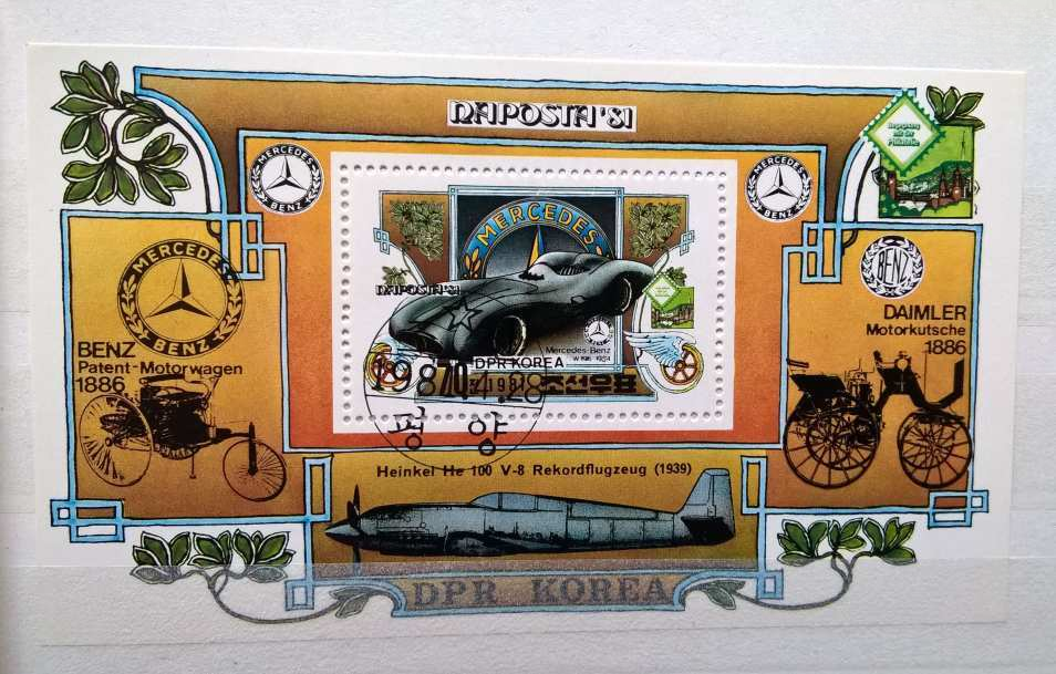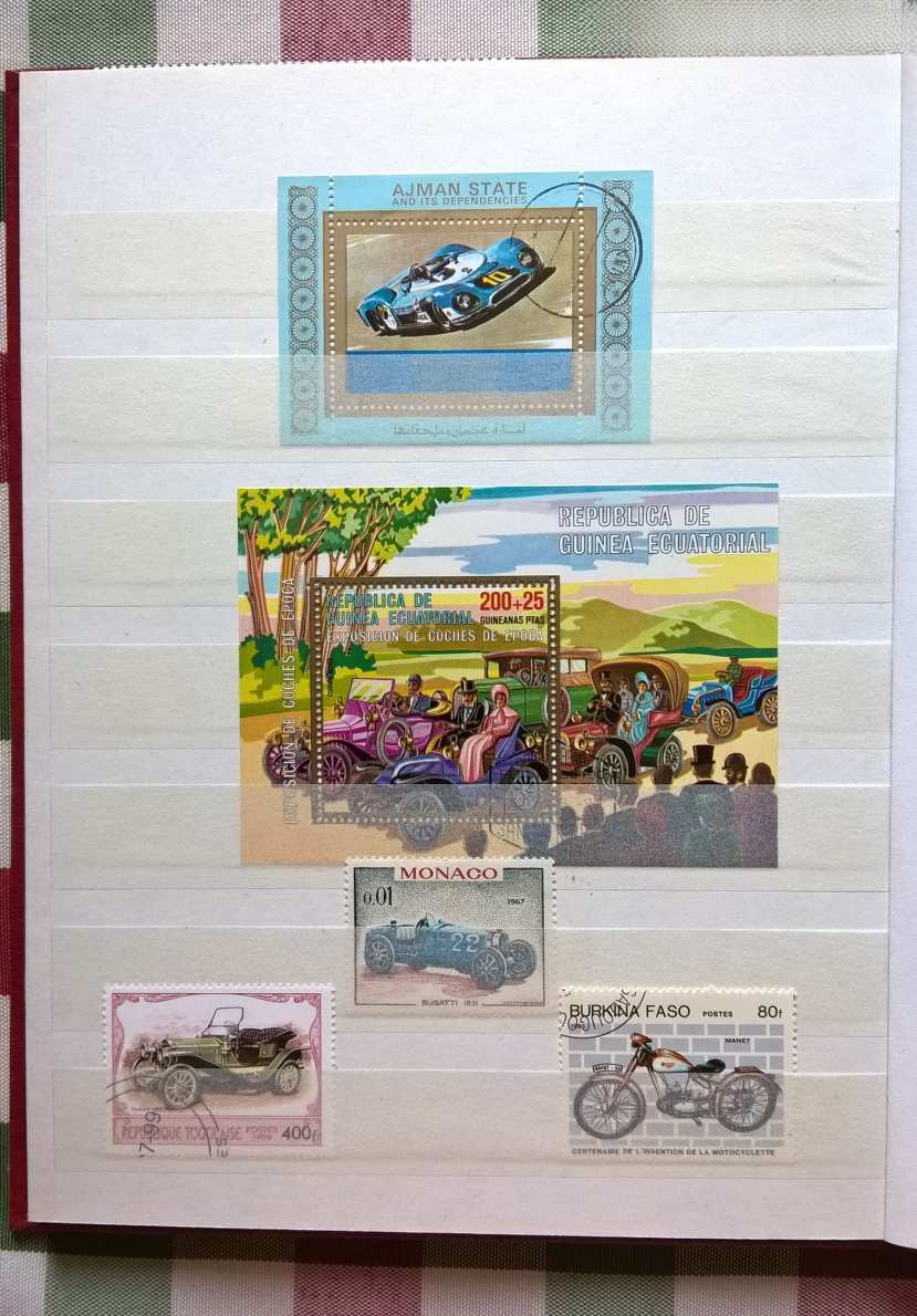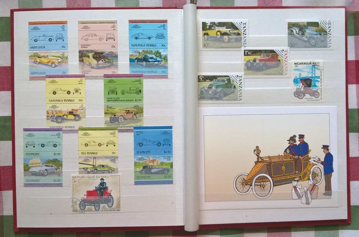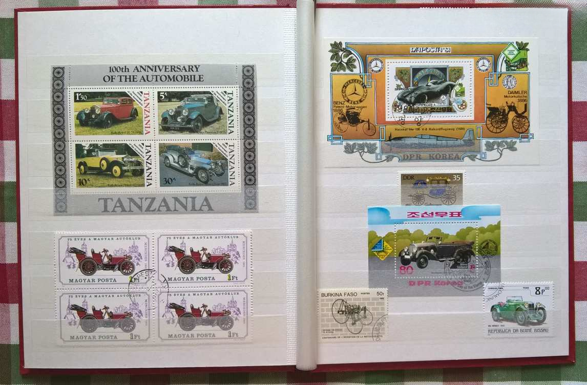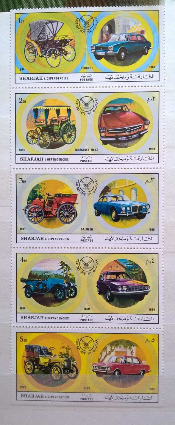 Az albumban több, mint 100 db bélyeg, 6 db bélyegblokk (ritka kiadásúak), 1 db Veterán autó – képeslap és 1 db postatiszta 5-ös Sharjah-i kiadású veterán – modern autó páros sorozat található.