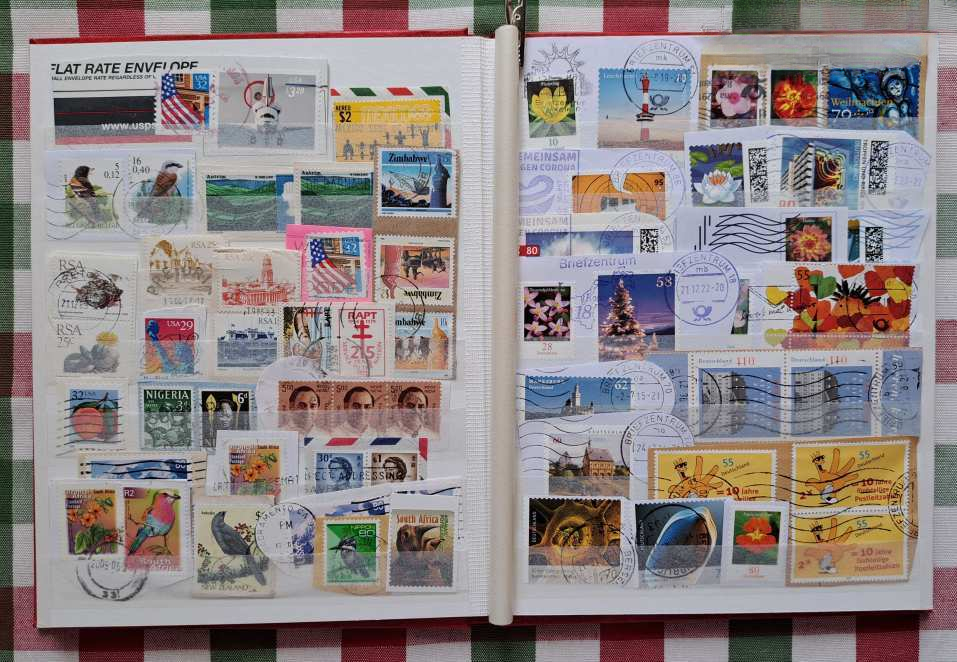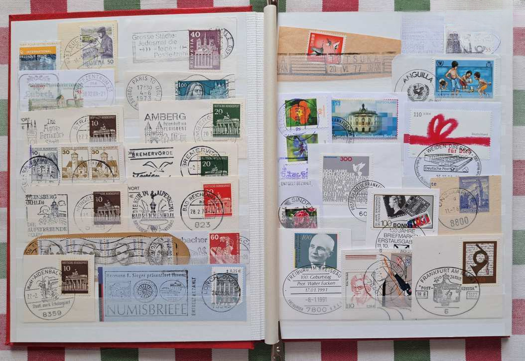 Különleges és szép bélyegzésű bélyegkivágások, 6 lapos/12 oldalas, A/5-ös ÚJ Briefmarken albumban