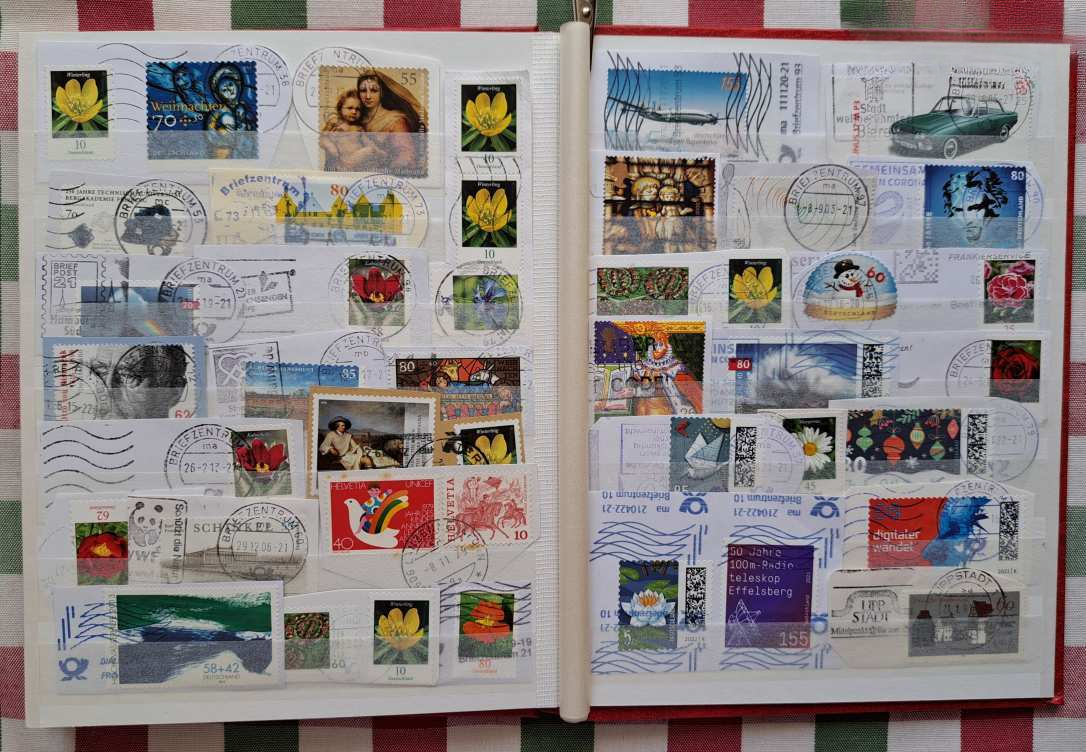 A licit tárgya: 6 törtfehér lapos / 12 oldalas, A/5-ös méretű ÚJ Briefmarken bélyegalbum – tele különleges és szép bélyegzésű bélyeg kivágásokkal Túlnyomórészt német, de más európai ország bélyeg kivágások is megtalálhatók az albumban, néhány észak-, ill. dél – amerikai, valamint ausztrál bélyeg kivágás kíséretében. Egy – egy bélyeg kiadás többször is előfordulhat, de más – más a bélyegzés és a nagyon sok alkalmi bélyegző egyedivé és értékessé teszi így az albumot. Nagyon szép gyűjtemény, kb. 250 db kivágással. Több tucat bélyeg van az albumban a 2010. és az azt követő Deutsche Post kiadásokból, amelyeknek nagyon jó Michel katalógus értékük van, főleg pecsételtem. Egyetlen bélyeg akár 2-3 € értékkel is bír!Maga az album modern kiadású, teljesen ÚJ!Márványos színű, kemény műbőr borítású, arany színű csíkkal díszített, A/5-ös méretű, 6 törtfehér lapos (12 oldalas), fehér elő – és utóoldalas Briefmarken gyűjtő-tároló bélyegalbum ÚJ állapotban.