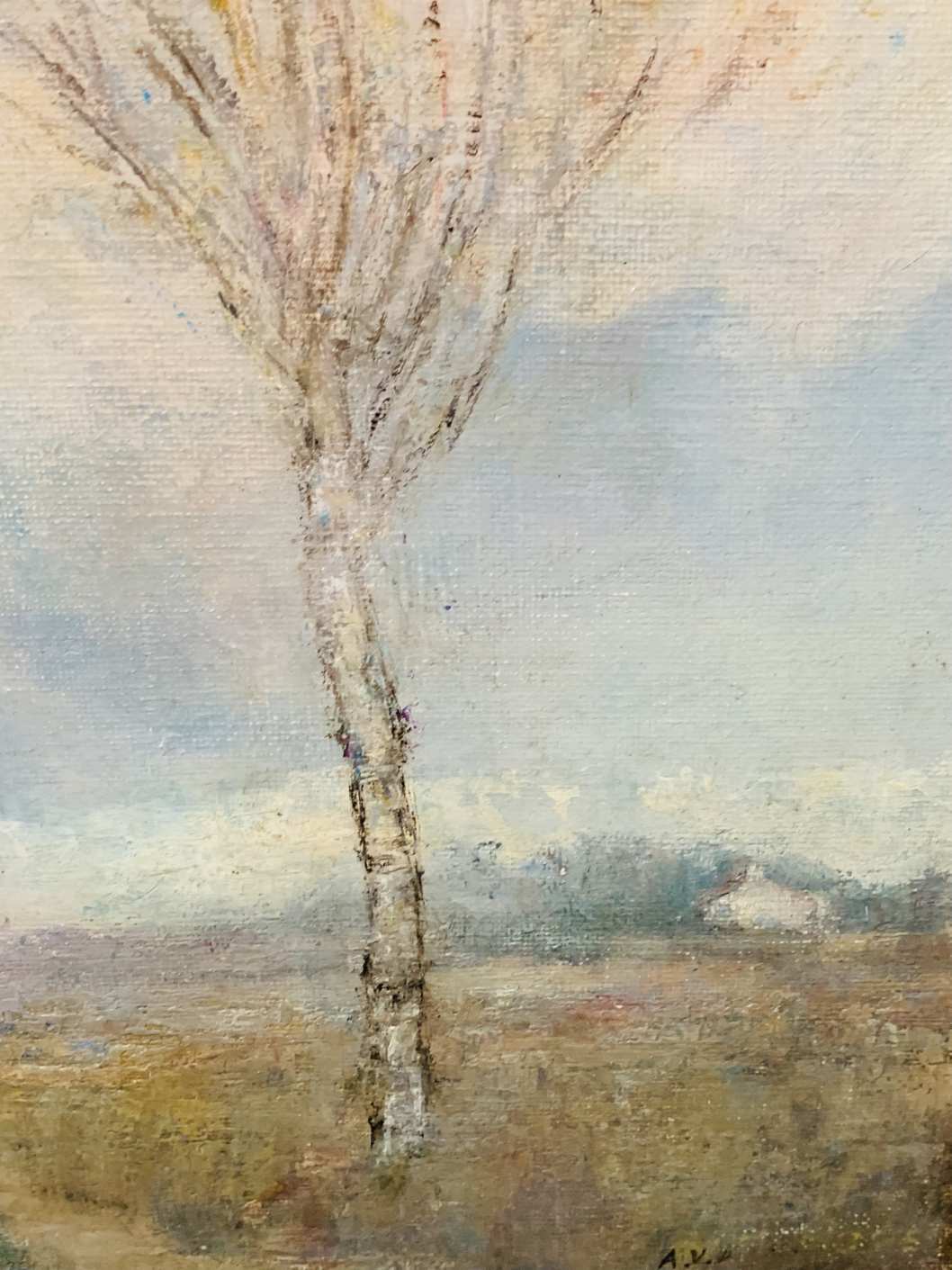Egyedi Pasztell szín világban megfestett tájkép vastag Blonder keretben