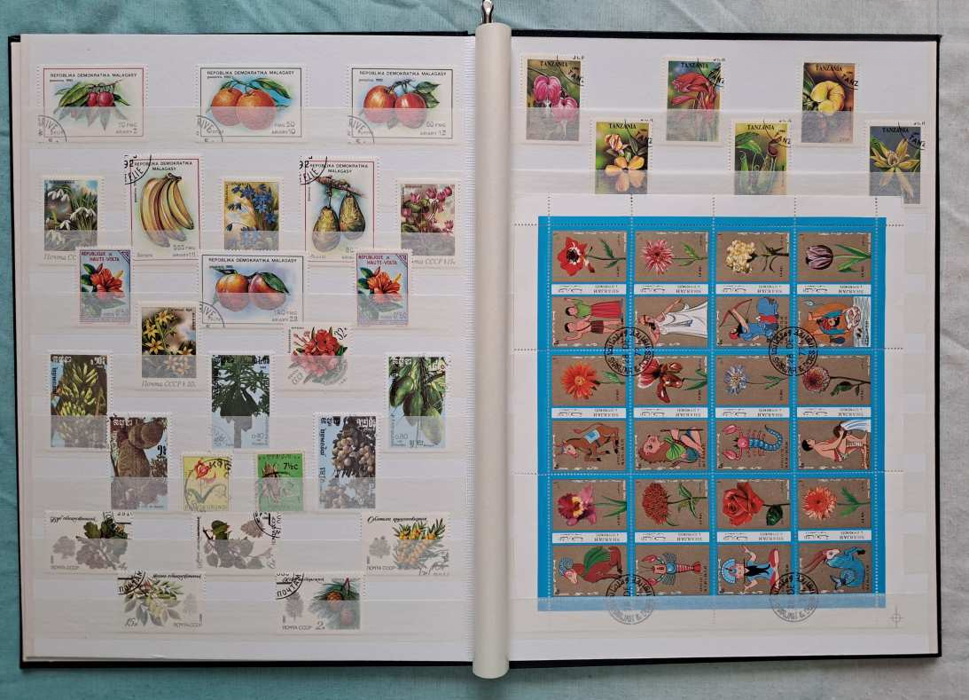 Növények és virágok bélyegeken/blokkokon 4 lapos/8 oldalas, A/4-es újszerű Briefmarken albumban+ ajándék ROZÉ SANGRIA 750 ml / Alkoholtartalom 6%