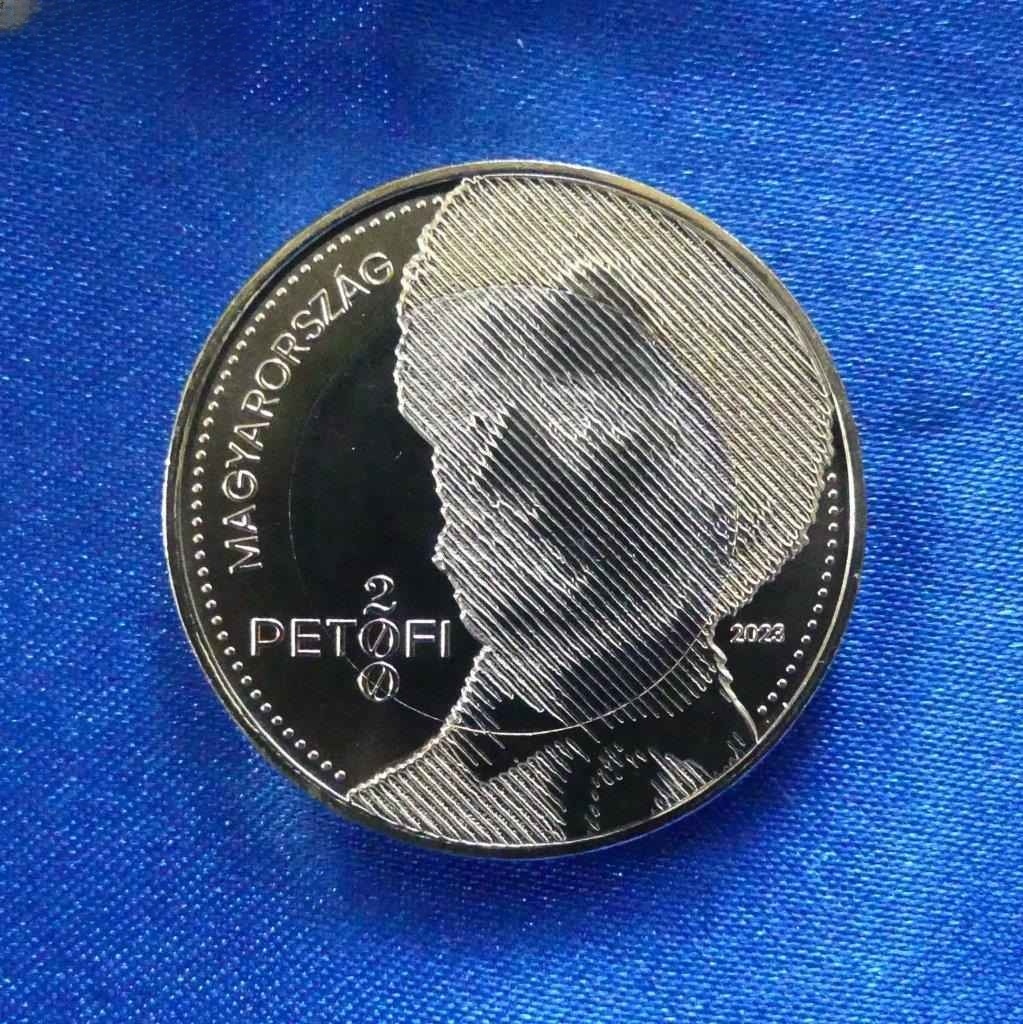 Petőfi Sándor portréjának modern raszteres ábrázolása, amelyet Barabás Miklós rajzolt. A gyöngyszegélyen belül a bal felső sarokban a felirat, a jobb alsó sarokban pedig vízszintesen a verési évszám szerepel. Alatta, a portrétól balra, Petőfi Sándor hivatalos évfordulós logója található.