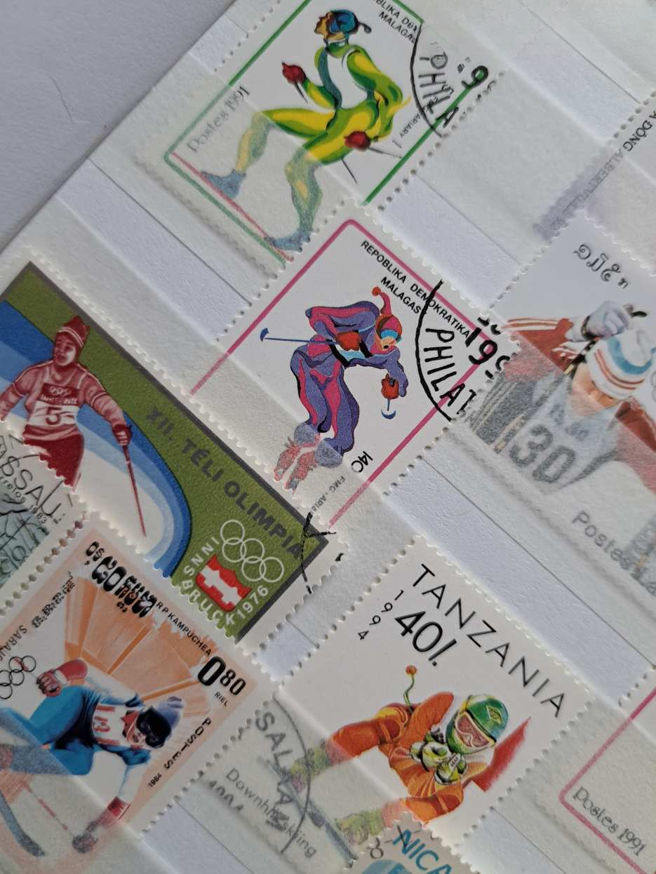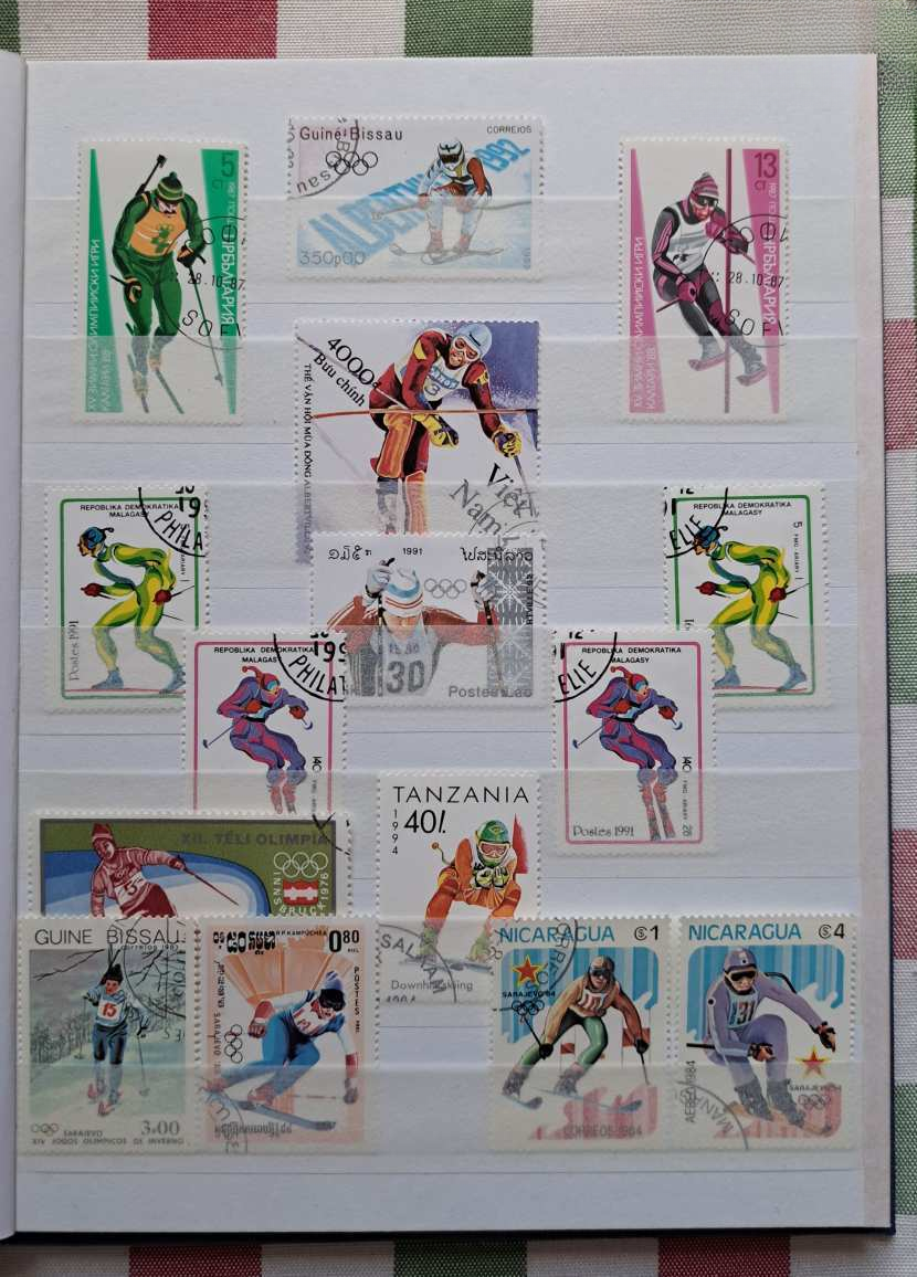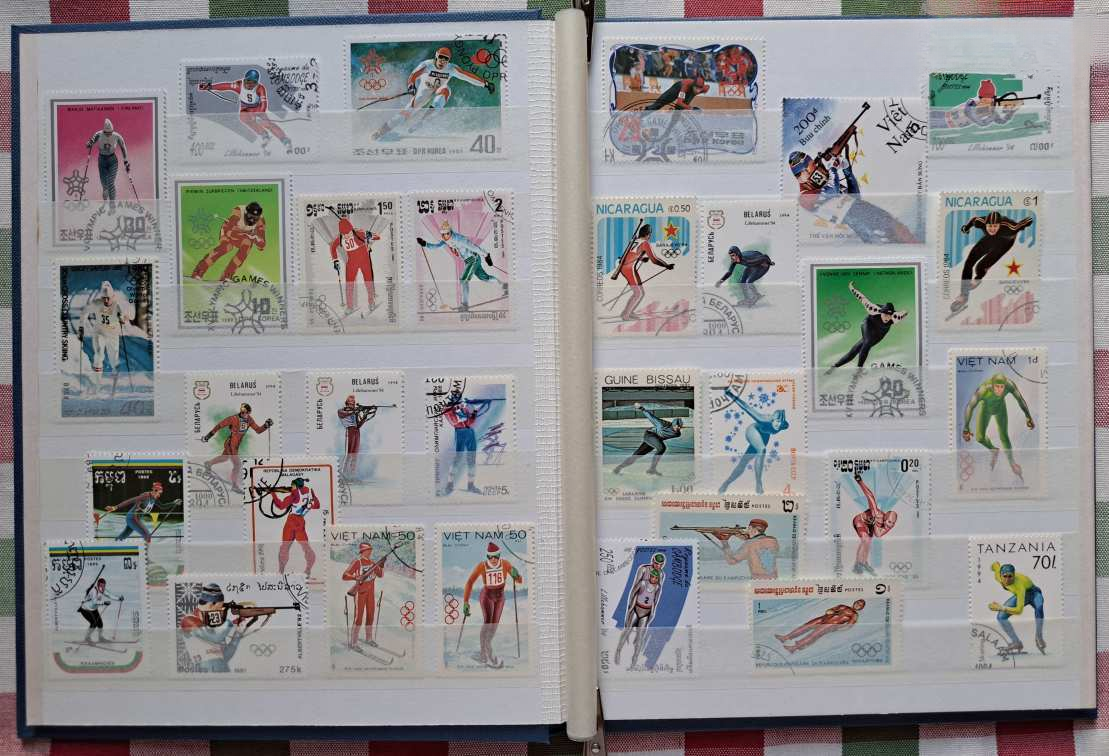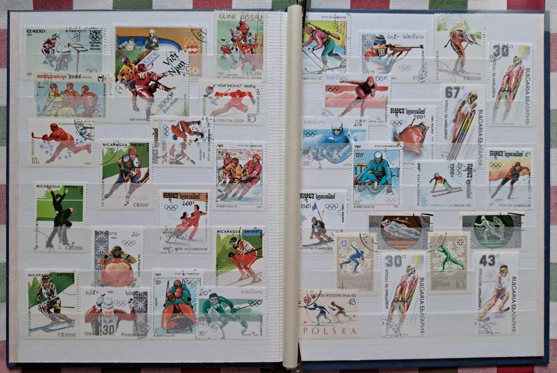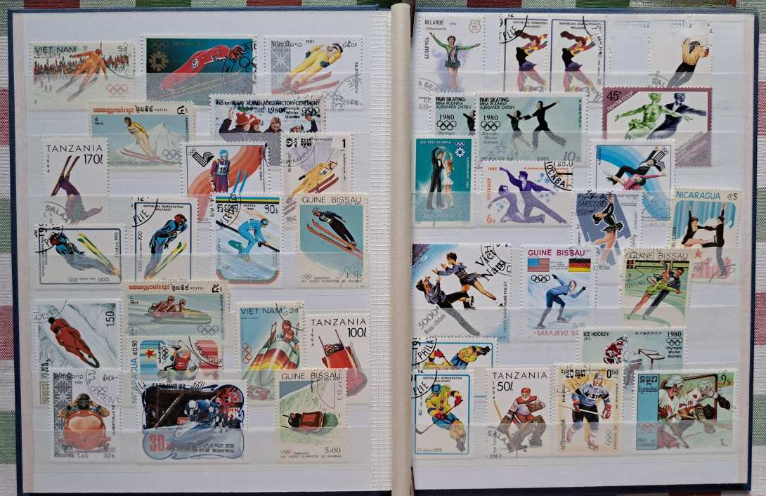 Az album minden lapja rendezetten, esztétikusan és szigorúan tematikusan elrendezetten megtöltve a téli olimpiai játékok számtalan ágához készült bélyegekkel (síugrás, szlalom, műkorcsolya, jégtánc, sífutás, biatlon, jégkorong, szánkó, bob) és 1 db 6-os bélyeg sorral a világ számos országából, több földrészről, pl. Európa, Ázsia, Afrika, Amerika.