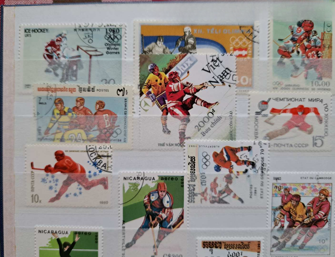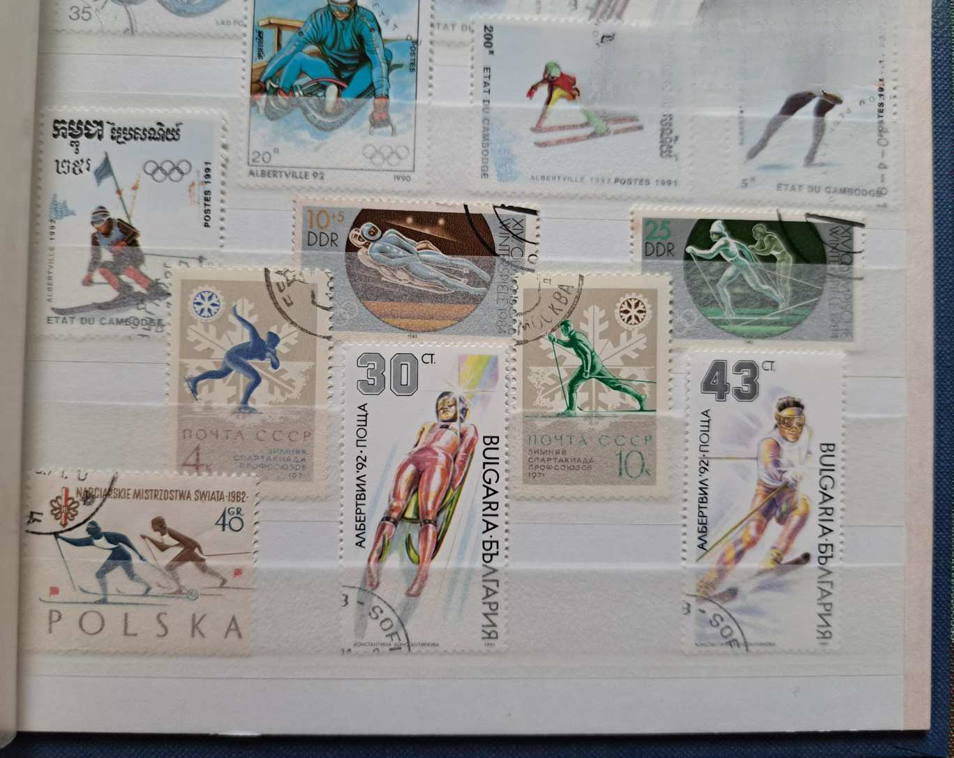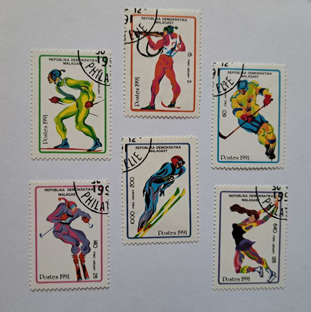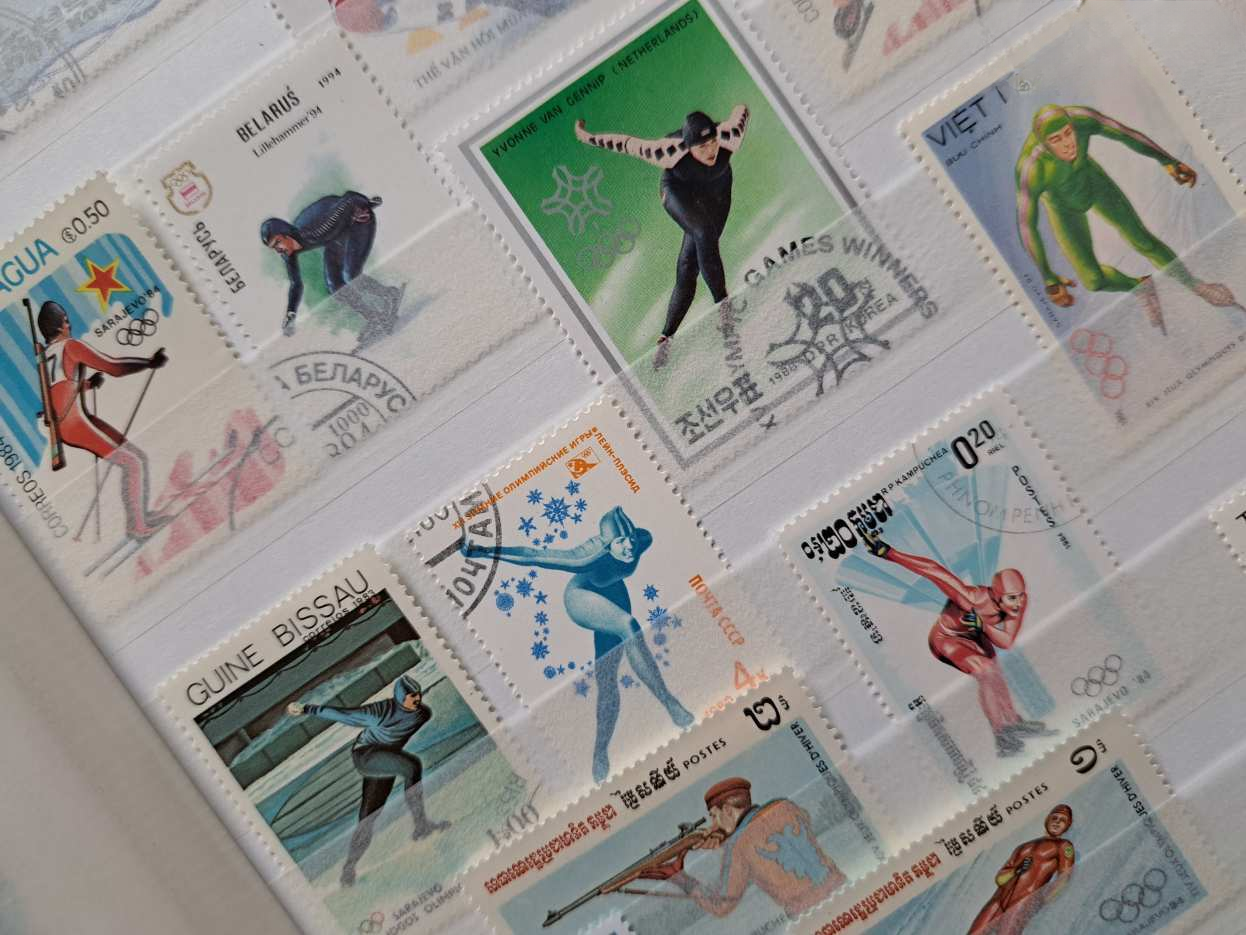Az album minden lapja rendezetten, esztétikusan és szigorúan tematikusan elrendezetten megtöltve a téli olimpiai játékok számtalan ágához készült bélyegekkel (síugrás, szlalom, műkorcsolya, jégtánc, sífutás, biatlon, jégkorong, szánkó, bob) és 1 db 6-os bélyeg sorral a világ számos országából, több földrészről, pl. Európa, Ázsia, Afrika, Amerika.