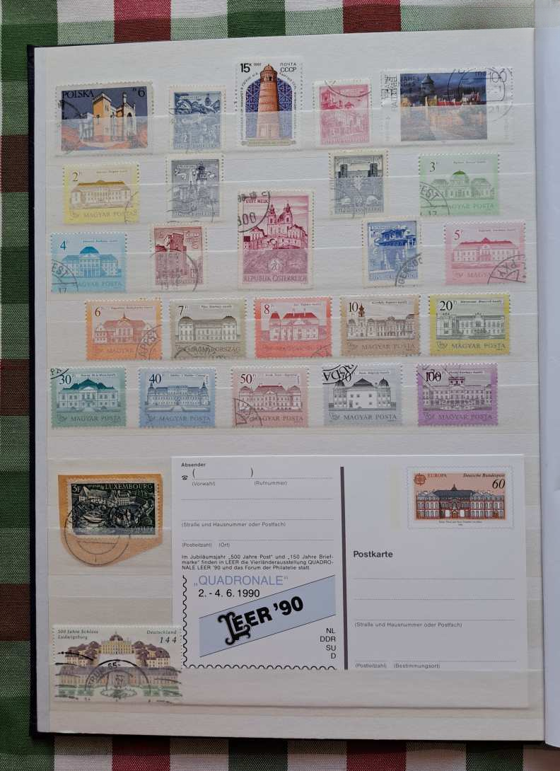 A bélyegek – a témához szorosan kapcsolódva – CSAK európai országok bélyeg kiadásait tartalmazza, főképp NDK (DDR), NSZK (BRD), olasz, csehszlovák, spanyol, francia, magyar, svájci, lengyel kiadású bélyegek, de román, dán, norvég, jugoszláv, osztrák, orosz, luxemburgi bélyegkiadások is megtalálhatók ebben a szinte komplex kis gyűjteményben, de legalábbis íztelítőt adnak ezen országok kiadásainak jellegéből.