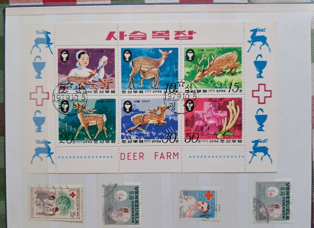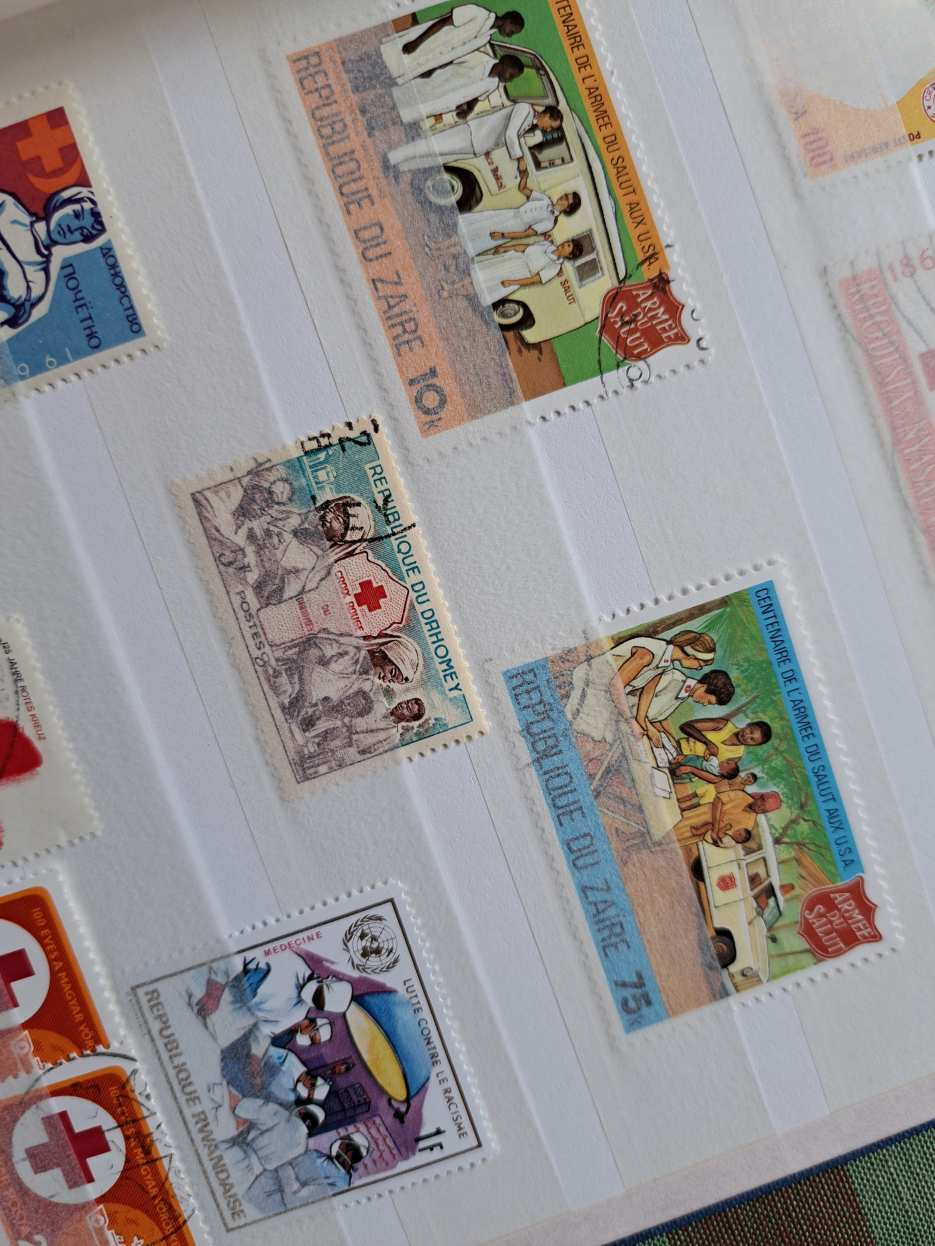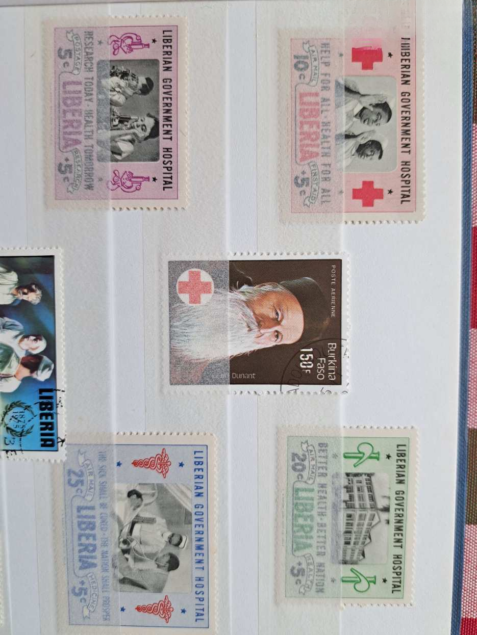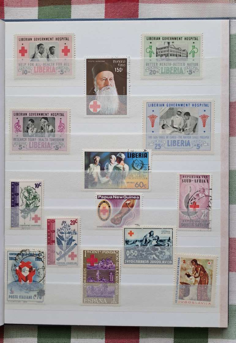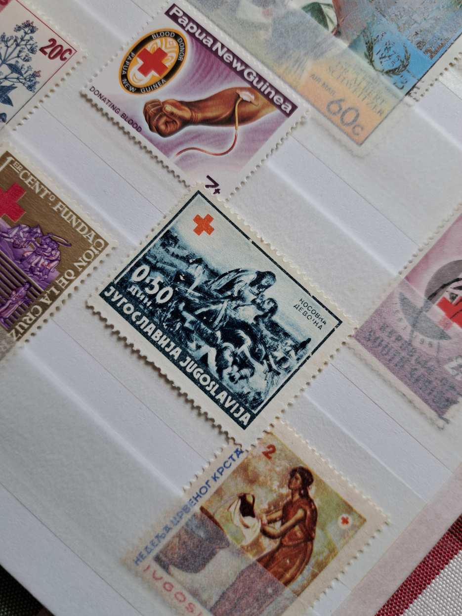 A licit tárgya: 4 fehér lapos / 8 oldalas, A/5-ös méretű ÚJ Herlitz bélyegalbumban „Vöröskereszt” témájú bélyegek, blokkok — az 5 földrészről