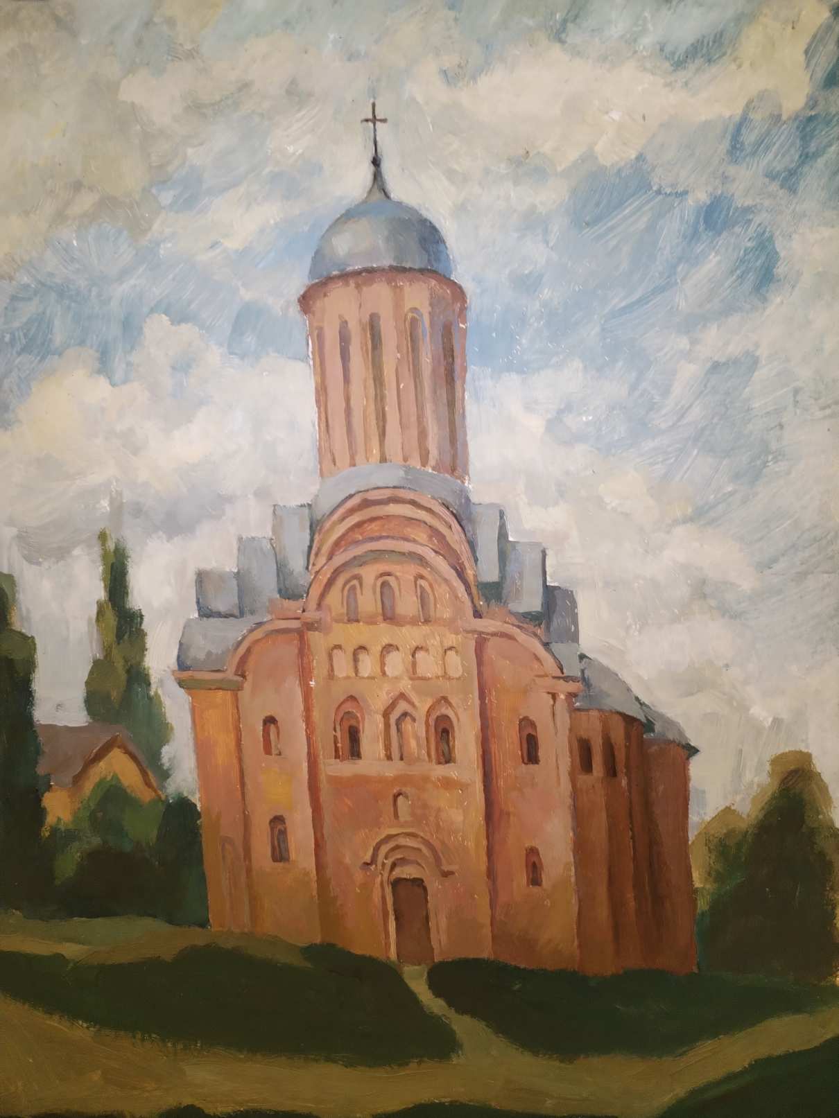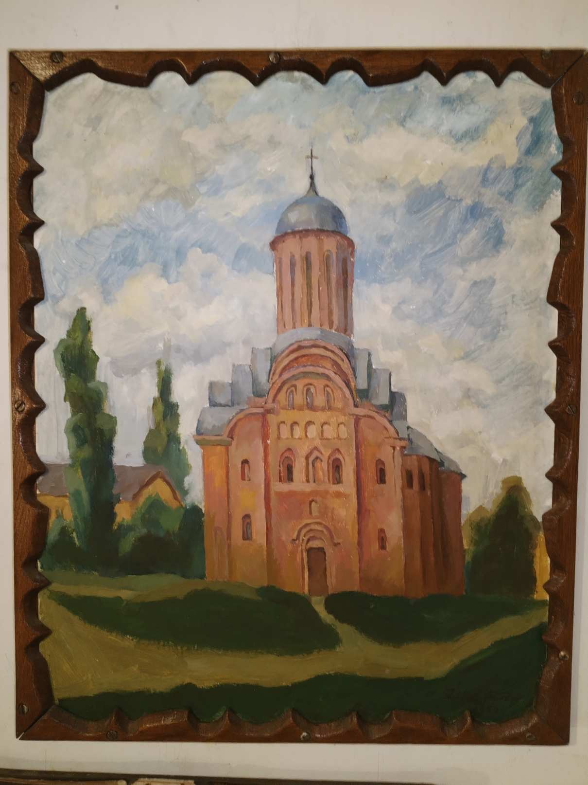 Templom a domboldalon – gyönyörű régi olajfestmény,csodás, egyedi, kézzel faragott fa keretben, gyűjtői hagyatékotból vàsàrolva!